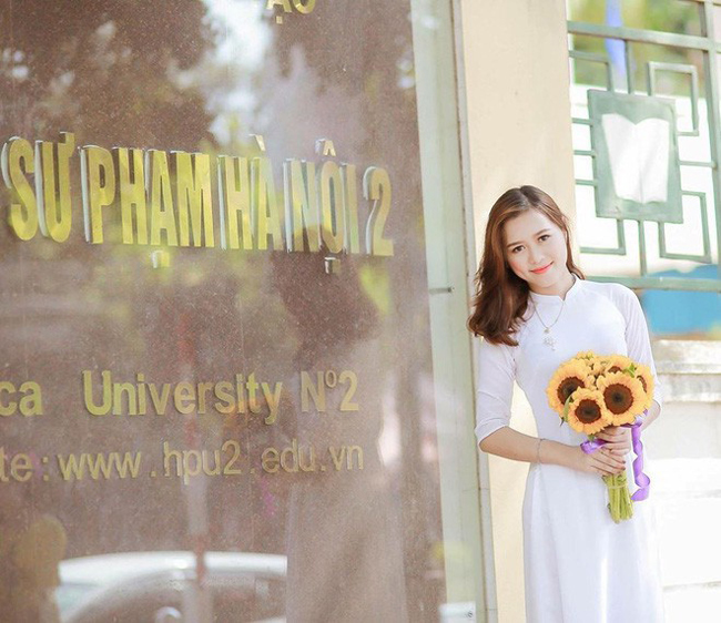 Hình ảnh của Hương Thu được học sinh đăng tải trên Facebook với lời khen ngợi: "Cô giáo Tiếng anh của tớ ở ngoài đẹp và dễ thương hơn trên hình gấp 100 lần".