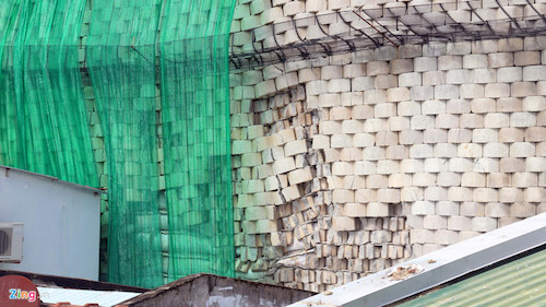 Ghi nhận của ****.vn ngày 3/1, bức tường cao 12 m tại Dự án khu biệt thự Marina Hill (thôn Hòn Nghê, xã Vĩnh Ngọc, TP Nha Trang) bắt đầu sập những mảng bê tông lớn. Chủ đầu tư dự án thì vẫn khẳng định bức tường an toàn, việc sạt lở chỉ là lớp gạch trang trí bên ngoài. Ảnh: An Bình.