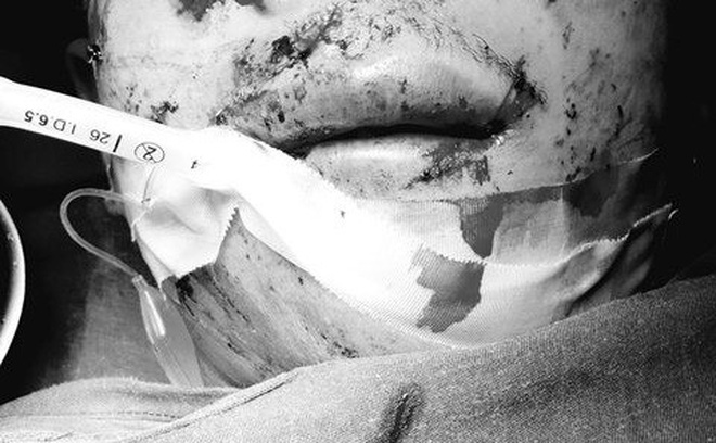 "Bệnh nhân mất thị lực hoàn toàn mắt bên phải do vỡ nhãn cầu phải, nhìn mờ mắt bên trái do nhãn cầu bị đụng dập và vùng mặt chảy nhiều máu với cánh mũi bị lóc ra 2 bên, trơ cánh mũi"- bác sĩ Thắng thông tin.