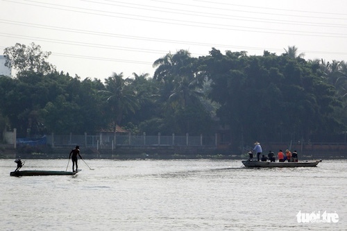 Nhiều người dân thấy cảnh này liền thuê ghe ra giữa sông để thả nhưng "đội vớt cá" vẫn bám theo sau đuôi ghe, cá vừa đổ xuống liền bị vớt lại.