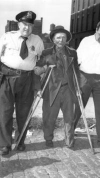 Cảnh sát Chicago dẫn giải người bị què chân về đồn vào 1954. Ảnh: Luigi Mendicino / Chicago Tribune.