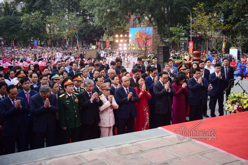 Sau lễ rước kiệu vua Quang Trung, Thủ tướng Nguyễn Xuân Phúc dẫn đầu đoàn đại biểu và đông đảo nhân dân Thủ đô, du khách thập phương về dâng hương, hoa tưởng nhớ công lao to lớn của “Người anh hùng áo vải” cùng các tướng lĩnh, chiến sĩ nghĩa quân Tây Sơn.