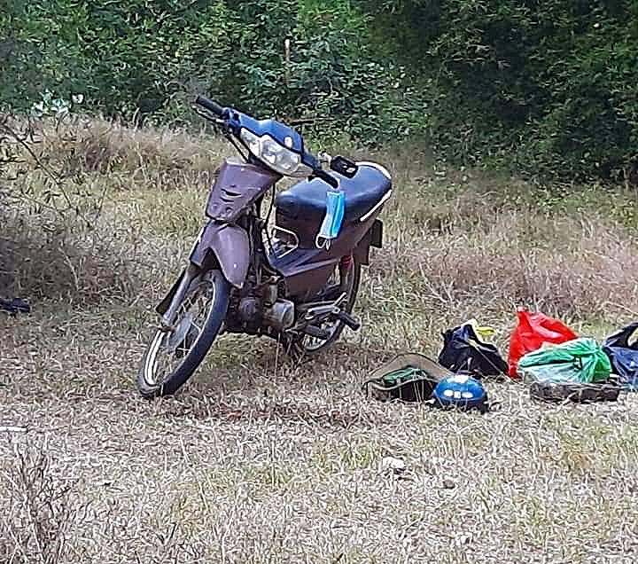 Xe máy của nạn nhân và đồ đạc tại hiện trường.
