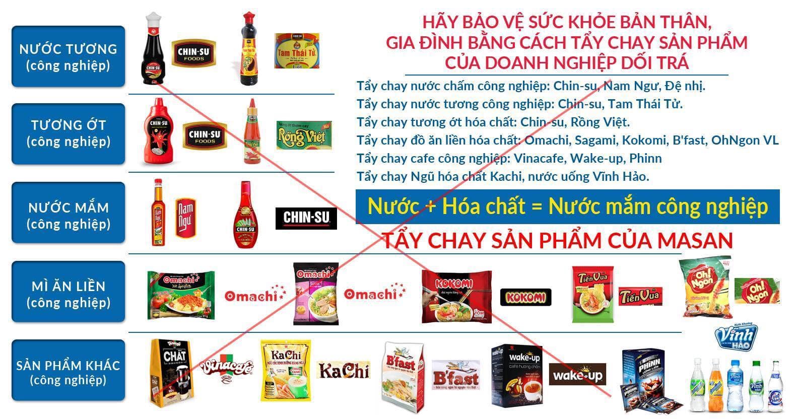 Hoá chất mùi vị mắm pha nước lã cùng các hoá chất khác là MẮM GIẢ chớ không có tên gì khác là nước chấm hay nước chan gì cả.