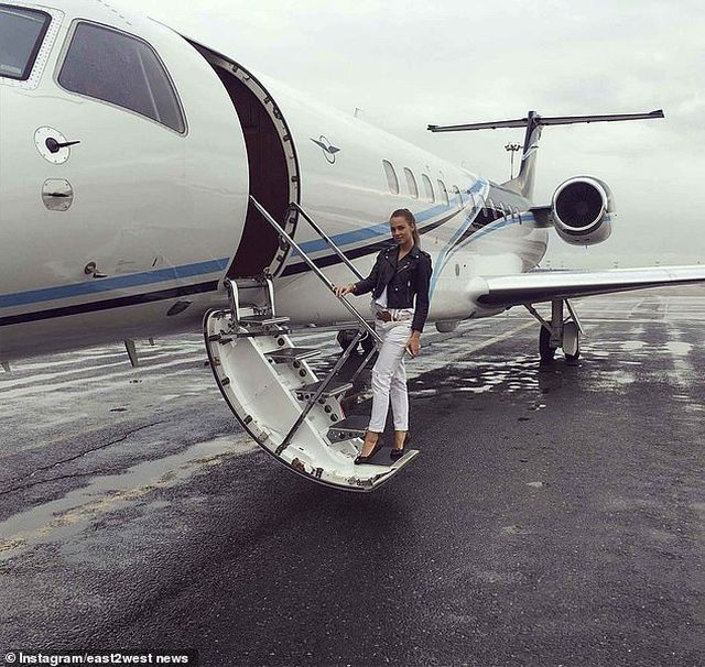 Một tiểu thư trong hội nhà giàu Nga với tên gọi Maria, chụp hình trước khi bước chân lên chuyên cơ riêng của gia đình.