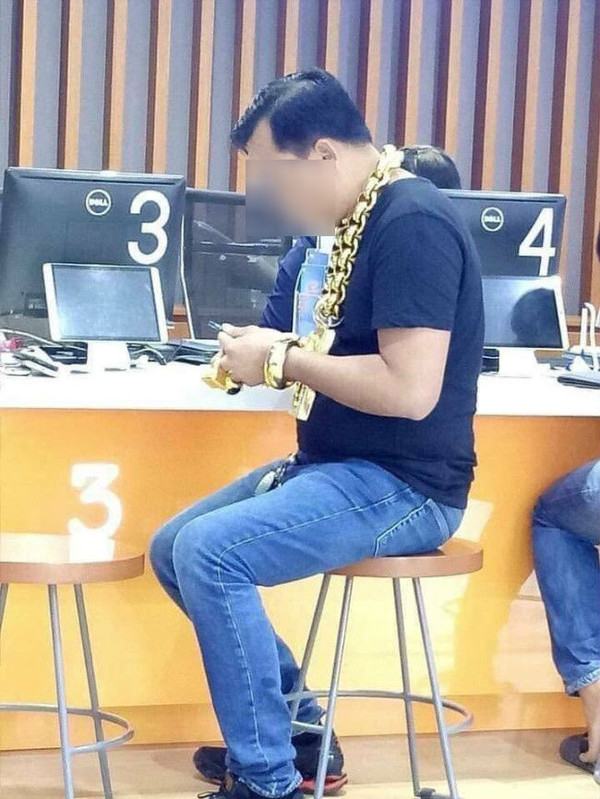 Trước đó, anh Phúc từng “gây bão” mạng xã hội khi những dây vàng bản lớn xuất hiện ở một cửa hàng điện thoại. Cụ thể, anh Phúc đeo một sợi dây vàng có kích thước “khủng”, ngoài ra, lắc tay, nhẫn cũng thuộc loại vàng cỡ lớn khiến nhiều người không khỏi choáng ngợp. Được biết tổng số vàng ở lần xuất hiện này là 8kg.