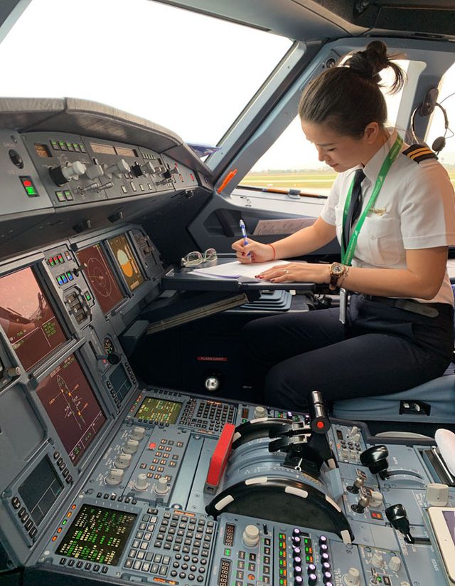 Khi còn làm tiếp viên hàng không, tôi thường vào buồng lái nói chuyện với cơ trưởng và cơ phó. Lúc đó, tôi hay hỏi về các thao tác kỹ thuật và được chỉ dẫn rất tận tình. Một lần, tôi bày tỏ ý muốn trở thành phi công, nhưng không dám vì mình là phụ nữ. Anh cơ trưởng chia sẻ: ‘Không việc gì phải ngại. Con gái tôi thích làm phi công, tôi rất ủng hộ’. Sau câu nói của anh ấy tôi đã suy nghĩ.