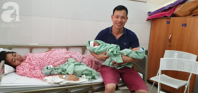 Nằm cạnh 3 đứa con với tâm trạng vô cùng phấn khởi, chị Hường kể lại quá trình mang thai đầy vất vả: "Lúc đầu tiên nghe tin có thai sau 14 ngày chuyển phôi, nội ngoại gia đình 2 bên ai cũng mừng. Khi lên bệnh viện Phụ sản Hà Nội khám, bác sĩ nói tôi mang đa thai, hơn nữa, trong đó có 1 thai lại nằm trong cổ tử cung. Nếu giữ lại cả 3 sẽ rất nguy hiểm tới tính mạng, mà nếu xử lí 1 thai cũng rất phức tạp với 2 thai còn lại. Nhưng, bác sĩ khuyên để đảm bảo cho sức khỏe cả mẹ cả con, nên giữ lại 2 phôi thai. Lúc ấy, cảm giác như sét đánh ngang tai mình", chị H. bồi hồi kể lại.