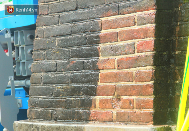 Sự tương phản và khác biệt rõ ràng trước và sau khi sử dụng công nghệ steam cleaning. Bề mặt tường giữ được độ chắc chắn, sáng rõ và không bị bào mòn. Công trình Ngọ Môn như vừa được"vén màu thời gian" để trả lại màu sắc gần như ban đầu của di tích được xây dựng từ 186 năm trước này.