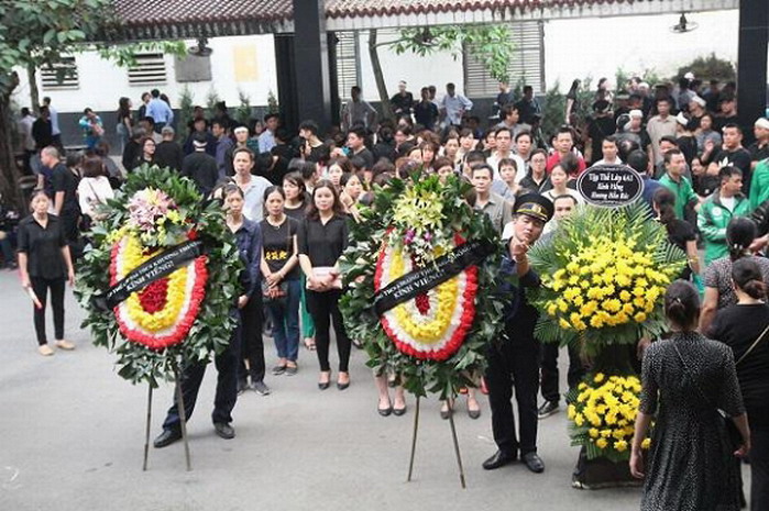7h sáng 25/4, trước cửa chính Nhà tang lễ Bệnh viện Bạch Mai bật lên tấm bảng cáo phó ghi tên bà Lê Thị Thu Hà. Trần Đức Anh và Trần Đức Hiếu, hai người con trai của nạn nhân đang mặc áo tang, đầu đeo khăn trắng, tay chống gậy đứng bên cạnh linh cữu của mẹ.
