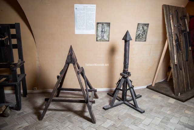 Có những chiếc ghế còn có cả chông nhọn bằng kim loại khắp ghế. Sau này trong nhà tù, chiếc ghế này trở thành ghế điện để hành quyết tội phạm.