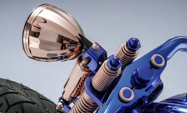 Chiếc xe được giữ động cơ nguyên bản của Softail Slim S. Chiếc xe mới được sơn màu xanh ấn tượng.