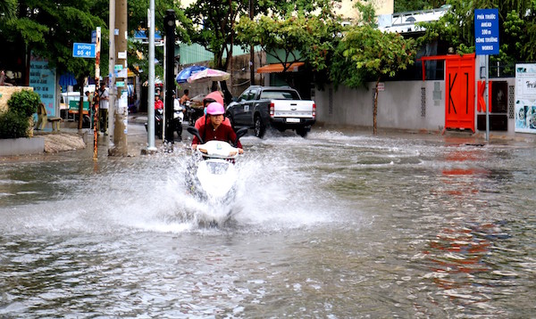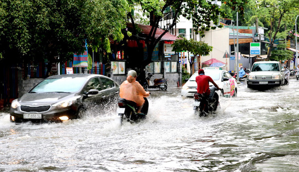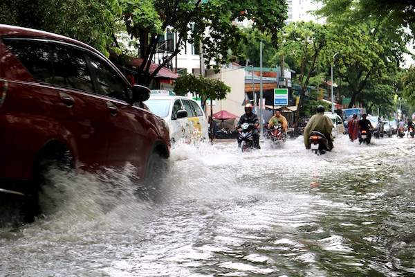 Mưa lớn chỉ kéo dài gần 30 phút, gây ngập nhẹ ở một số khu vực. Tuy nhiên, tại "rốn ngập" khu Thảo Điền (quận 2), nước ngập mênh mông trên hàng loạt tuyến đường như Quốc Hương, Tống Hữu Định, đường số 41...