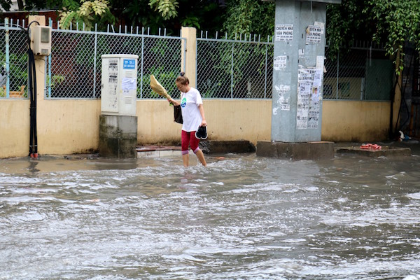 Nước dâng cao khoảng 30 cm ở đường Quốc Hương