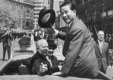 TT Diệm ngồi xe mui trần đi trên phố Broadway ở thánh phố New York