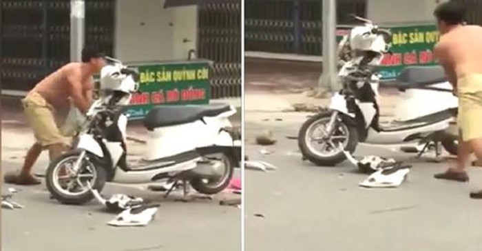 Người chồng mang xe ga của vợ ra đường đập nát. Anh chồng vừa đập vừa hét lớn 'Hát hò này, vui chơi này, vui không, vui không'. Nguyên nhân được cho là do ghen tuông, nghi vợ ngoại tình.
