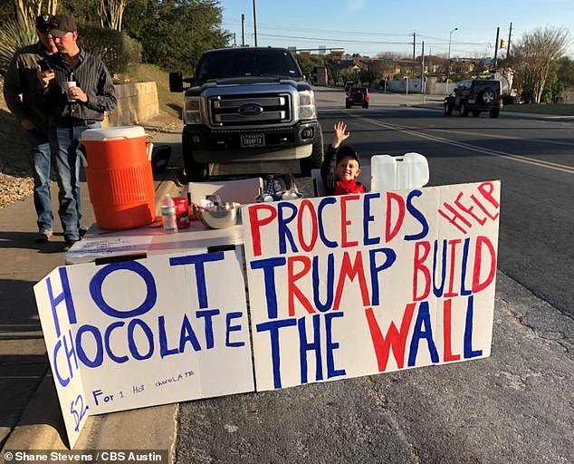 Bé trai thật đáng yêu. Bé đã quyên góp được 6.000 đôla cho ông Trump. Đó là cậu bé 7 tuổi ở Austin, Mỹ. Cuối tuần qua cậu đã mở một quầy bán sôcôla nóng, thu về 6.000USD để ủng hộ cho kế hoạch xây bức tường biên giới với Mexico của Tổng thống Donald Trump.