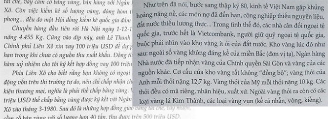 “Sở dĩ Việt Nam phải vay nóng ngoại tệ như vậy bởi lượng vàng chuyển sang tái chế ở Liên Xô không kịp đem ra thị trường bán, trong đó có Thụy Sĩ. Các nhu cầu cấp bách của quốc gia gồm cả vấn đề nóng bỏng lương thực cho người dân đòi hỏi phải có ngoại tệ ngay. Sau đó Việt Nam dùng tiền bán vàng trả lại cho Liên Xô”.