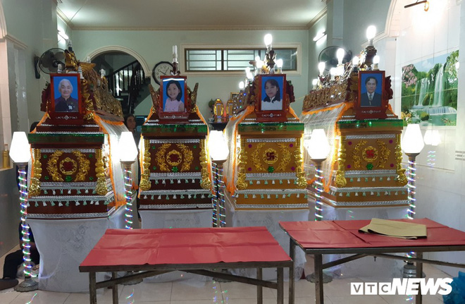 Hình ảnh 4 quan tài đặt cạnh nhau khiến ai nhìn thấy cũng phải xót xa.