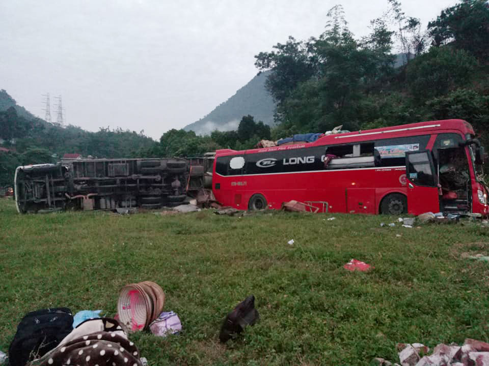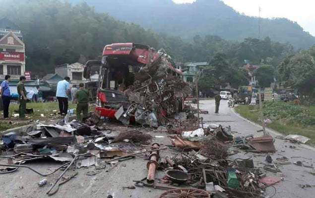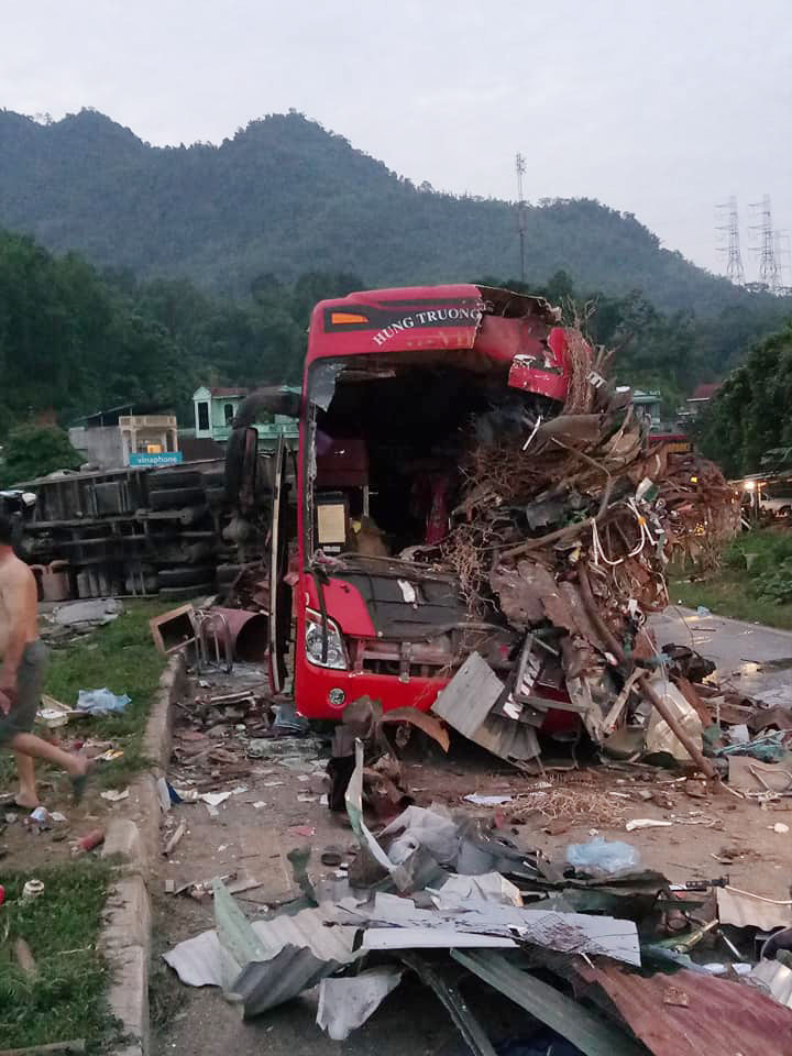Vụ tai nạn xảy ra vào nửa đêm trên địa bàn tỉnh Hòa Bình. Xe chở sắt và xe khách đã va chạm với nhau khiến 3 người tử vong và 38 người bị thương. Hiện trường cho thấy chiếc xe khách bị nát bét, bịt kín với sắt vụn.