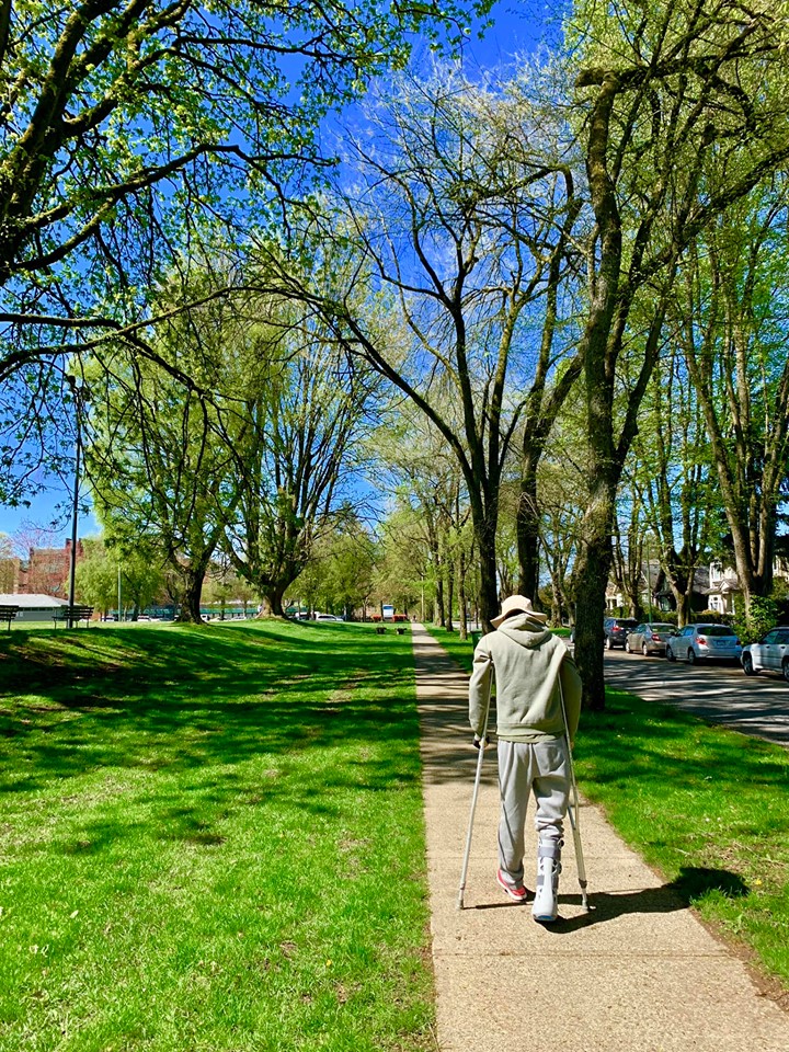 Ngày 22/6, người đàn ông của tôi cuối cùng cũng ra ngoài để đón không khí trong lành với thời tiết đẹp. Tôi rất biết ơn vì lúc đó không có quá nhiều người xung quanh, để anh ấy có thể tận hưởng bước đi của mình mà không ngần ngại với những ánh mặt của người lạ - đang nhìn chằm chằm vào anh ấy (Cố gắng thuyết phục Tom ra ngoài là sự nỗ lực và là thành tựu lớn đối với tôi). Việc đi ra ngoài chắc chắn để lại tác động lớn đến tâm lý của Tom, khi mà sẽ có người liếc nhìn anh ấy. Tôi nói với anh ấy rằng những lúc đó sẽ ổn thôi, mọi người sẽ chỉ nhìn rồi bỏ đi, sau đó thì họ sẽ chẳng gặp lại mình nữa.