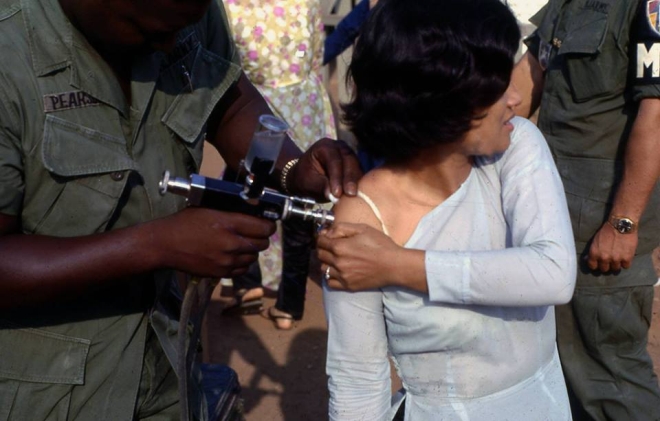 Lâu lắm rồi hôm nay, tôi vô tình tìm được tấm hình vật chứng này. Các bạn hãy nhìn vào “cây súng” trên tay “thằng đế quốc Mỹ” này.