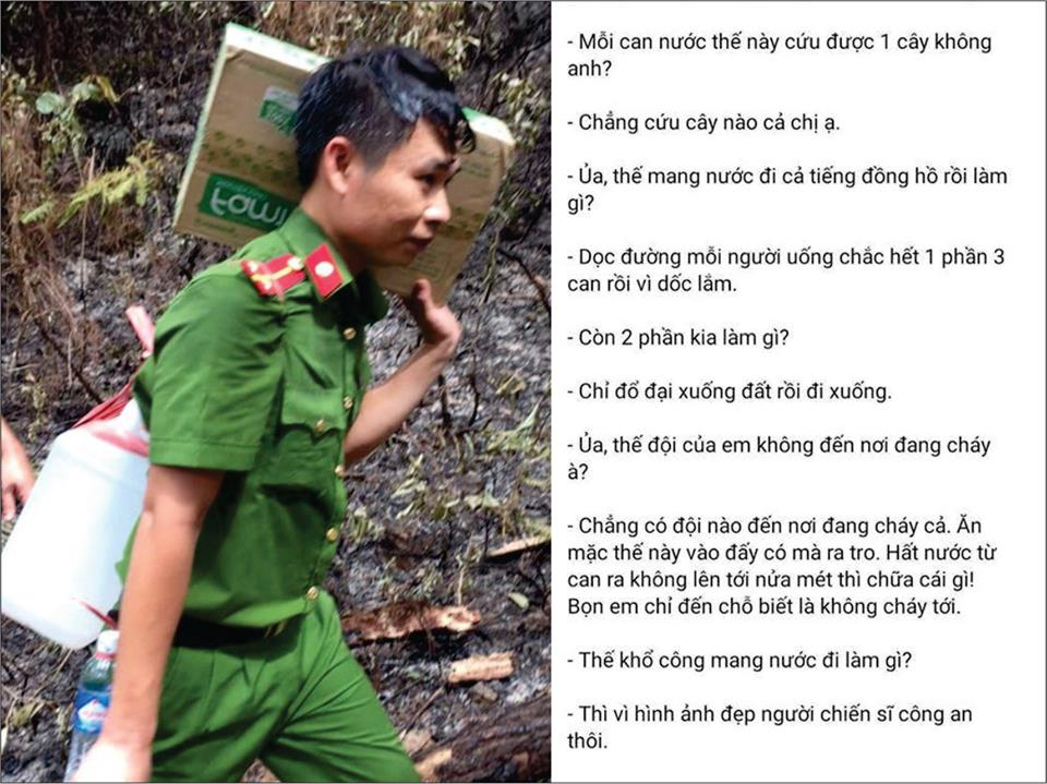 Trong đợt cháy rừng vừa qua đã cho ta thấy, hầu như, nhà nước chẳng có chuẩn bị trang thiết bị gì để dập lửa. Khi sự cố xảy ra đến mức nguy hiểm thì họ mới chạy ra chợ mua một số can nhựa về cho chiến sĩ mang nước lên núi dập lửa. Chiến sĩ nào không có can đựng nước thì mang theo cành cây để dập lửa, vậy thôi.