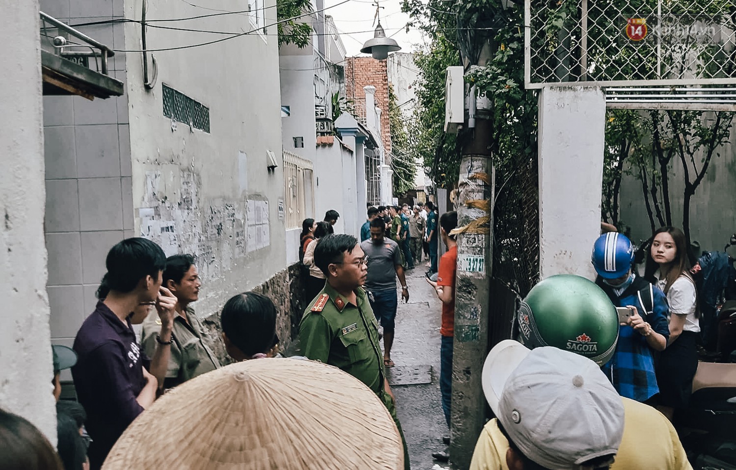 Nhiều người dân tập trung trong con hẻm để theo dõi vụ việc.