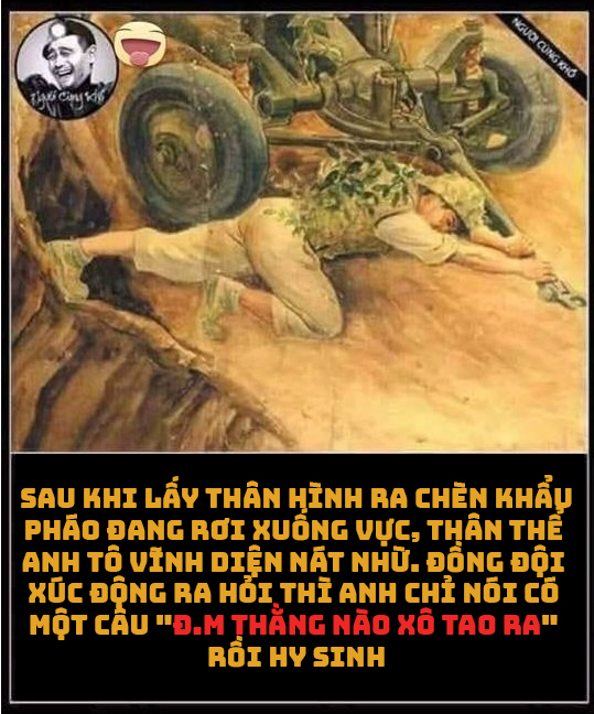 Anh thều thào :"con mẹ nó thằng nào xô tao " rồi chết queo .