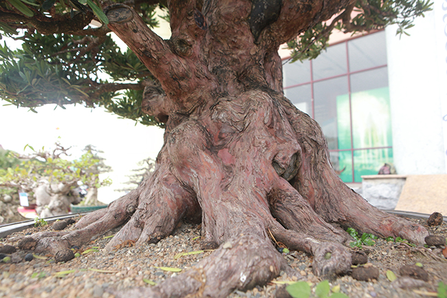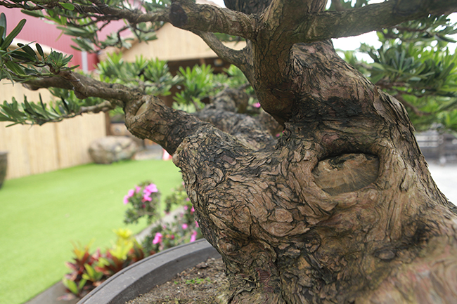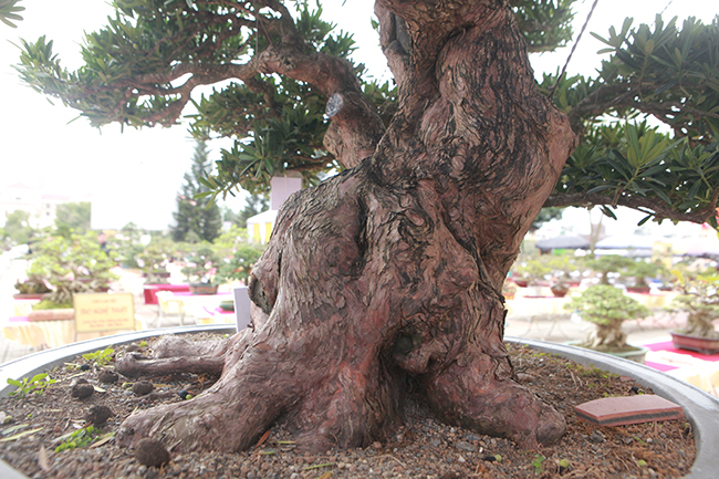 Thân cây ngắn nhưng uốn lượn hình một con rồng, phải trải qua thời gian dài người nghệ nhân mới có thể tạo tác được như vậy.
