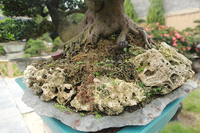 Người Nhật chơi cây thường đặt cây vào bối cảnh hợp lý. Đa số họ để trên những phiến đá đẹp, phù hợp để làm bật nổi dáng cây.
