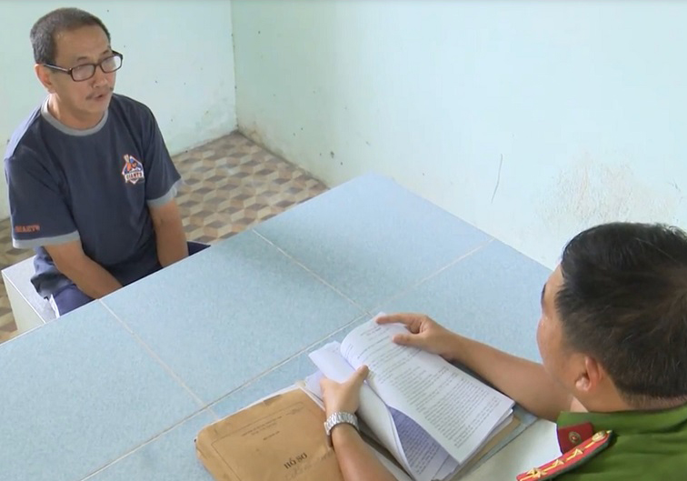 Đối tượng Dương Quang Thông làm việc với cơ quan Công an quận Thanh Khê, Đà Nẵng. Ảnh: Lam Hàn