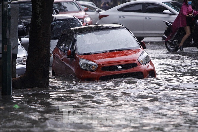 Ghi nhận của Tiền Phong, trong khoảng thời gian từ 14h đến 15h, tình trạng ngập sâu đã xảy ra trên nhiều tuyến phố nội đô, trong đó có cả các tuyến phố cổ. Trên các tuyến phố Lý Thường Kiệt, Hai Bà Trưng, Trần Hưng Đạo…, tình trạng ngập đã khiến nhiều xe bị chết máy.