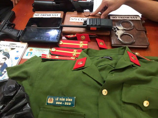 Tại cơ quan điều tra, Lê Văn Đỉnh đã khai nhận không phải là cán bộ công an, toàn bộ số quân phục, công cụ hỗ trợ trên là do đối tượng lên mạng đặt mua nhằm mục đích để lừa đảo chiếm đoạt tài sản những người nhẹ dạ cả tin.