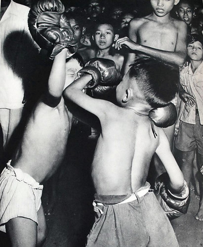 Những đứa trẻ tập đánh bốc. Môn thể thao này cũng được đưa vào Việt Nam từ nước Pháp.