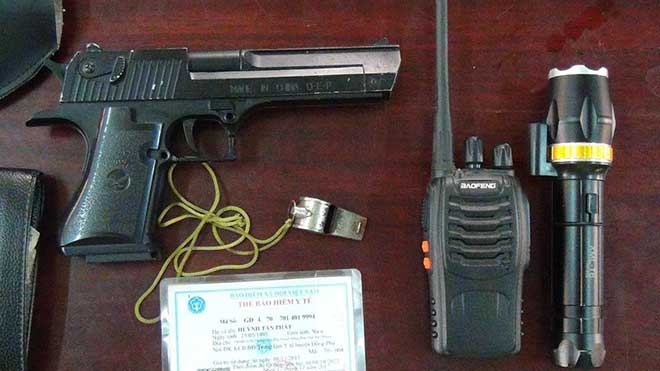 Đối tượng đã đóng giả làm CS đi tuần đêm để lừa người đi đường chiếm đoạt tài sản. Mua súng, bộ đàm, đèn pin và gắn đèn ưu tiên vào xe máy để giả Cảnh sát giao thông đi hù dọa, lấy tiền của người đi đường.