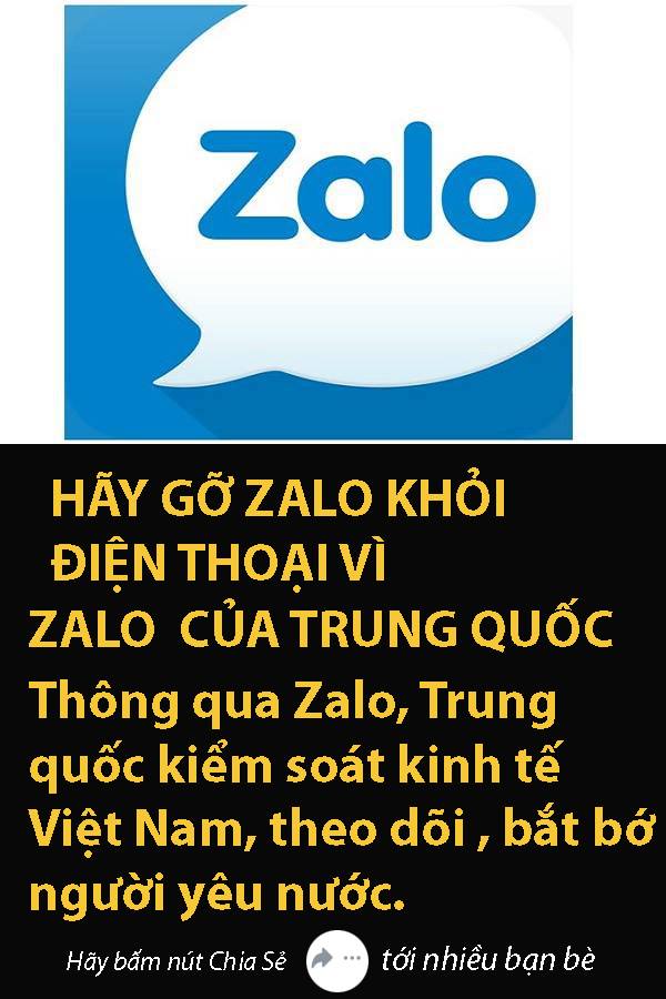 Thay vì chia sẻ, chúng ta hãy đăng lại bài viết, và bức ảnh này. Hãy tẩy chay Zalo bằng mọi cách. Mỗi người hãy hành động đừng để đến khi mất nước mới nuối tiếc. Thay vì hàng ngàn lượt chia sẻ, hãy tạo ra hàng ngàn lượt đăng lại. Hãy làm cùng tôi.