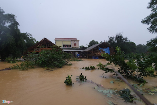 “Mưa lũ lên nhanh nên vợ cùng 3 con nhỏ về nhà ông bà ngoại, còn tôi ở lại canh giữ tài sản. Trâu, bò phải thả vào rừng, còn lúa và đồ đạc trong nhà thì đưa lên gác mái. Suốt đêm qua tôi không thể ngủ vì sợ nước dâng, tài sản sẽ trôi hết”, anh Giáp chia sẻ.