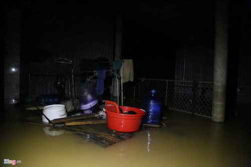 Anh Nguyễn Văn Giáp (33 tuổi, thôn Ấp Tiến) cho biết nước tràn vào nhà từ tối 4/9 rồi dâng rất nhanh. Một ngày sau, căn nhà gỗ của anh bị ngập một nửa.