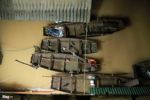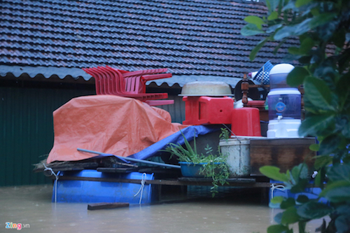 Cũng như anh Giáp, nhiều năm sống chung với lũ nên khi thấy con nước lên, người dân xã Phương Mỹ lại đưa nhu yếu phẩm, đồ đạc lên chiếc bè tự chế. Nước lên đến đâu phao nổi đến đấy, cả nhà sống trên bè.