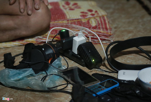 Nhiều người trong vùng tới nhà bà Tường để sạc điện thoại, đèn pin.