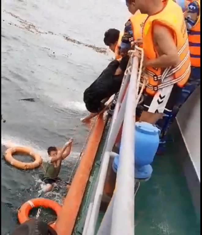 Đến 9 giờ ngày 6.9, tàu CN 09 phát hiện được 4 người đang bám trên 1 tấm ván gỗ, lênh đênh trên vùng vùng biển giáp ranh giữa Quảng Bình và Quảng Trị, cách bờ khoảng 18 hải lý.