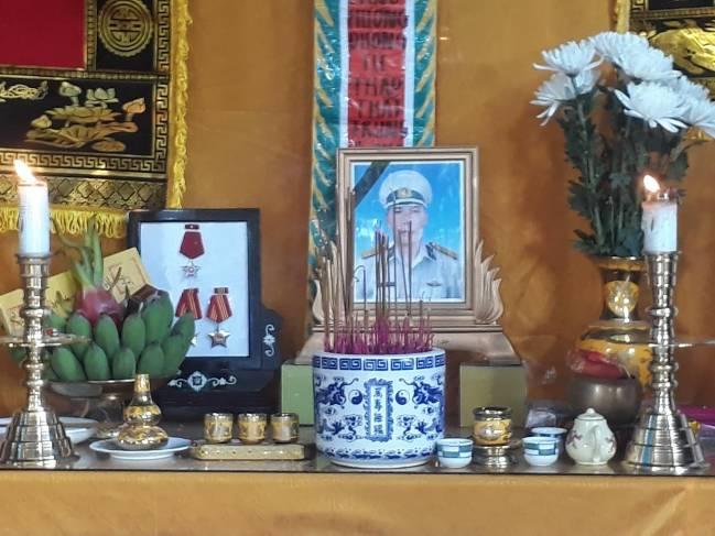 Bàn thờ tang lễ Thiếu tá Nguyễn Xuân Tài