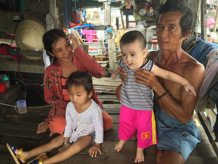 Ông là Nguyễn Văn Bền, 54 tuổi. Ông tựa lưng vào mạn bè. Tay ông đang đỡ đứa bé chừng vài tháng tuổi. Cạnh ông, bà Nguyễn Thị Mai, 53 tuổi vợ ông cũng đang vướng bận một bé gái. Cả 2 đứa bé đều là cháu nội của ông bà. Người phụ nữ nằm trên võng là chị Nguyễn Thị Út, 40 tuổi em ruột bà.