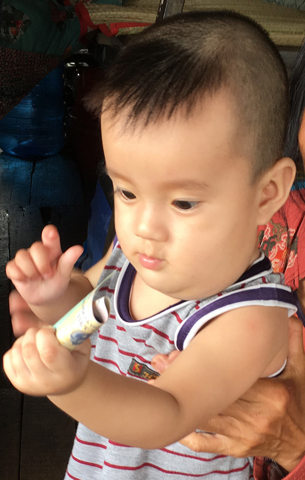 Đưa tay gạt dòng nước mắt, bà cho biết, 'mẹ nó bỏ cha con nó khi nó 10 tháng tuổi. Một mình cha nó làm sao nuôi được nên tôi phải nuôi. Cha nó đi làm xa, mỗi tháng gửi về hơn 1 triệu đồng để nuôi con. Con bé lớn lên chạy nhảy khắp nơi. Nhiều lần nó trượt chân rơi xuống nước. May mà phát hiện kịp thời.