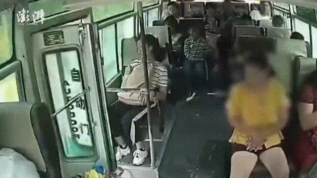 Thấy cửa xe buýt mở hờ, nữ hành khách bất ngờ đứng dậy nhảy khỏi xe làm ai chứng kiến cũng thót tim.