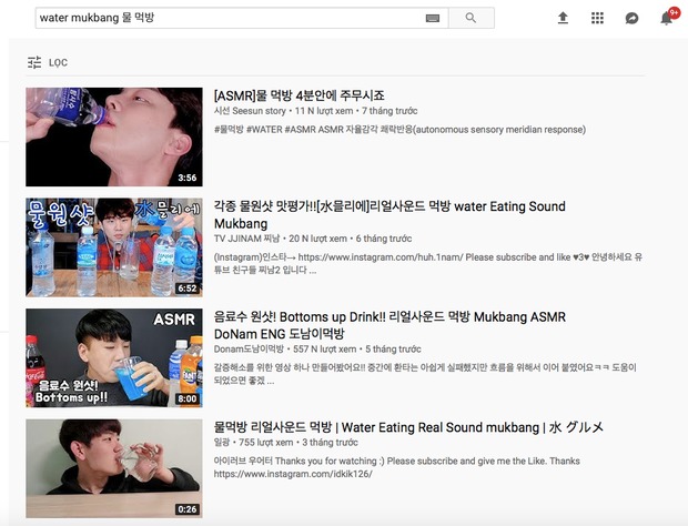 Search từ khoá “mukbang water” trên Youtube là sẽ thấy hàng loạt video mukbang nước lọc.