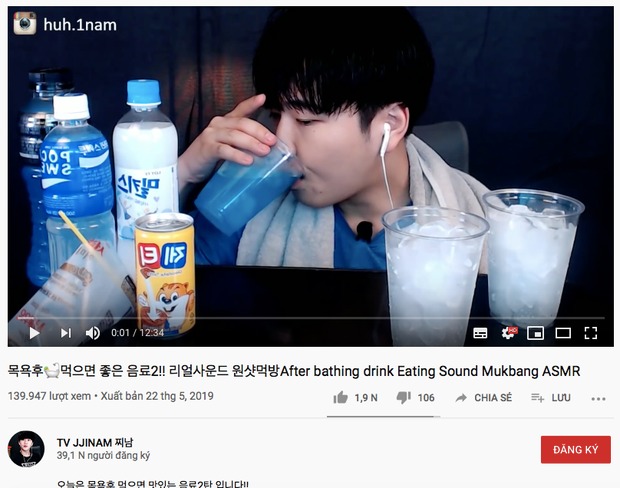 Không phải đùa đâu, mukbang nước lọc thực sự là trào lưu nổi tiếng ở Hàn Quốc, xuất hiện từ nửa năm trước nhưng phải cho đến thời gian gần đây mới gây hot trở lại. Các Youtubers Hàn còn kỳ công sản xuất 1 loạt các video mukbang những loạt nước lọc khác nhau, rồi dần dần thêm cả nước điện giải, nước khoáng vị trái cây…