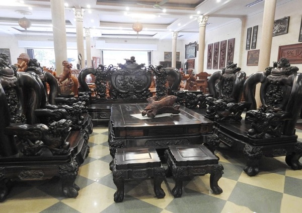 Những sản phẩm gỗ mỹ nghệ của Đồng Kỵ giá trị cao nhưng ế ẩm do mẫu mã “lai Tàu” không phù hợp với nhiều người Việt. (Hình: VTC News)