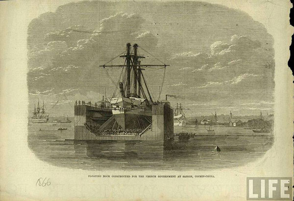 Ụ tàu nổi được mang từ Pháp sang Sài Gòn để thành lập xưởng Ba Son (Ảnh: LIFE)